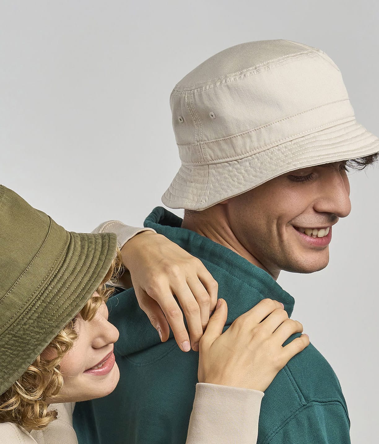 Revisited in shape, with its re-proportioned and more sloping brim, this fisherman’s model has decided to do without even metal eyelets to present its essential shape, which is not afraid of the wear and tear of time and washing. Customization options: screen printing, embroidery and DTF.