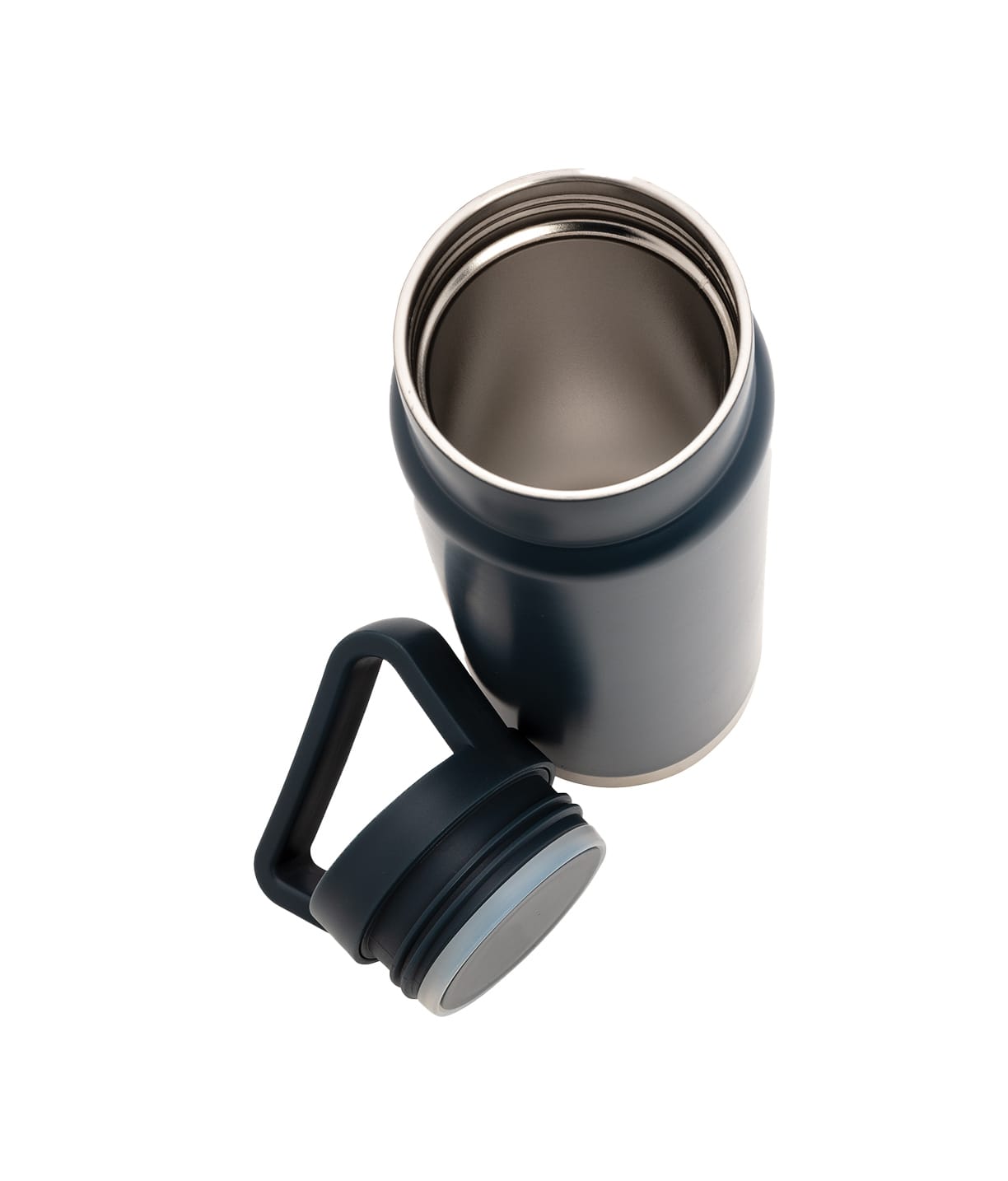 Premium thermic bottle with handle. Keeps your beverages hot for up to 5 hours and cold for up to 15 hours. With its convenient handle, it’s easy to carry, making it perfect for sports, outdoor activities, or everyday use. Made from high-quality materials, it is durable, reusable, and an eco-friendly solution for hydration on the go. Customization option: Laser Engraving, DTF and Screen printing.