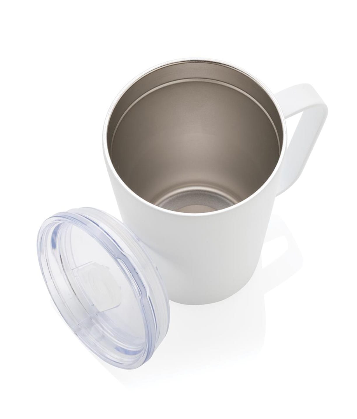 Recycled stainless steel modern mug features a spill-resistant lid that slides open smoothly to provide the perfect pour. This mug is made with double wall vacuum recycled stainless steel to keep beverages warm for up to 3 hours or cold for up to 6 hours longer. Customization options: Laser Engraving, DTF and Sublimation.